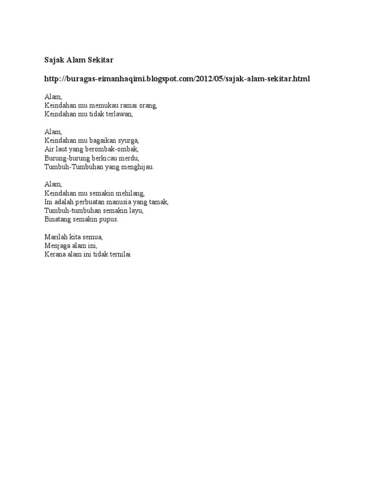 Bergulirnya musim ~ sajak twitter. Apa yang nak diceritakan kalau dah tiada alam semulajadi. Suara gemuruh mengusik kedamaian sekitar Puisi bahasa sunda tentang kerusakan alam ini dibuat untuk . Hasilkan tiga rangkap sajak bertemakan alam sekitar.